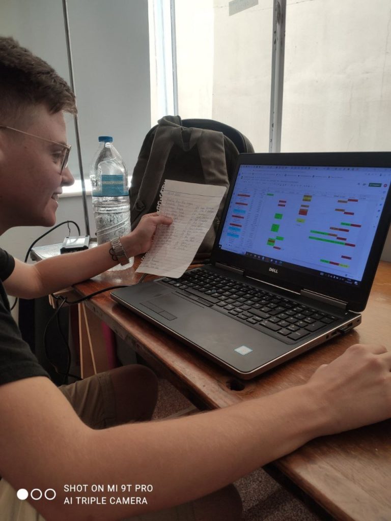Hier seht ihr mich im Büro, wie ich die Datenbank für die Essensspende aktualisiere.