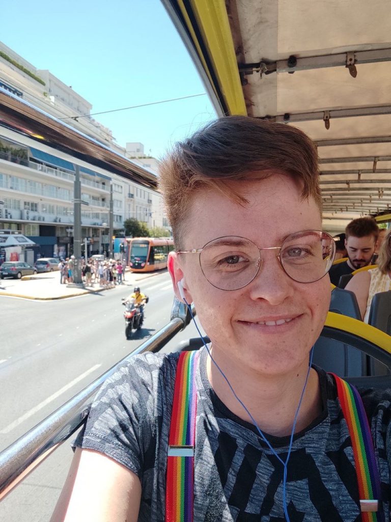 Meine Zeit hier genieße ich sehr. Athen ist eine wunderschöne Stadt, die LGBTQIA+ Community hier hat mich sehr herzlich empfangen und unterstützt dabei, eine gute Zeit zu haben und ich genieße es unglaublich, in einem Team zu arbeiten, in dem alle Fachkräfte teil der Community sind. Dabei auch noch andere queere Menschen, vor allem trans* Personen zu unterstützen, finde ich großartig. Unsere Klient*innen finden es auch super, dass ich trans* bin und daher viele ihrer Probleme und Anliegen auch auf einer persönlichen Ebene verstehen kann. Ich genieße es ganz besonders, Klient*innen dabei zu unterstützen, das richtige Label für ihr Gender im westlichen Kontext zu finden, sich auszuprobieren und zu sich selbst zu finden, z. B. wenn sie das erste Mal Make-up tragen oder andere Klamotten-Stile testen. Aber auch den Austausch mit denjenigen, die schon in ihrem Herkunftsland die für sie passende Geschlechtsidentität gefunden haben und/ oder schon länger hier sind, finde ich sehr bereichernd: Geschichten darüber, wann und wie sie herausgefunden haben, dass sie trans* sind und über den Umgang damit bzw. die Situation von trans* Menschen in anderen Ländern, aber auch aktuelle Gedanken, Sorgen und Wünsche, z. B. bezüglich geschlechtsangleichender Maßnahmen, Passing, das gute Gefühl, auf der Straße von Fremden richtig gegendert zu werden und vieles mehr.